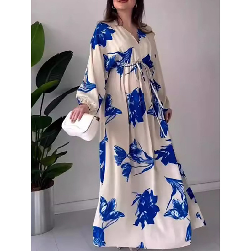 Women's Floral V Neck Maxi Dress Long Sleeve Summer Spring