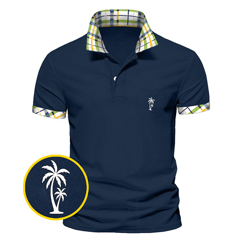 Men's Golf Shirt Pique Polo Shirt Business Casual Ribbed Polo Collar Short Sleeve Fashion Basic Solid Color Plaid Buttons Logo Summer Spring Spring Fall Regular Fit Yellow Navy Blue Green Golf