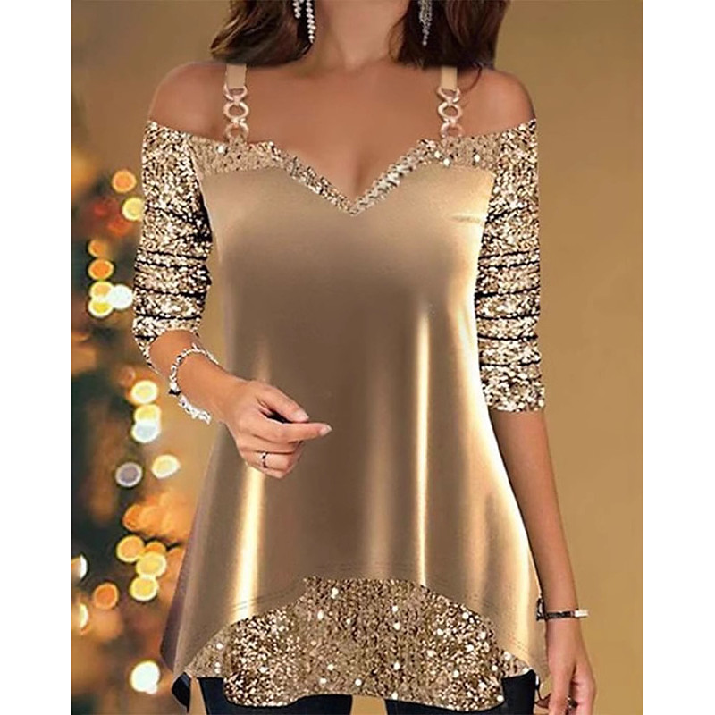 Christmas Women's Velvet Shirt Solid Color Graphic Elegant Vintage Party Long Sleeve Off Shoulder Long Tops Wedding Guest Party Evening Wear Party Sequins Print Red Gold Spring Fall Winter Spring