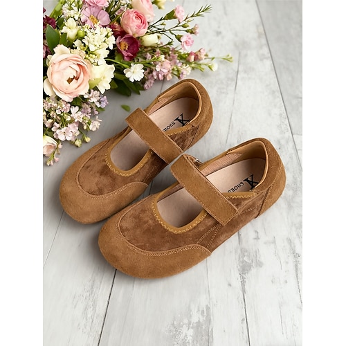 comode ballerine Mary Jane da donna in finta pelle scamosciata, vestibilità ampia, cinturino regolabile e design leggero, perfette per l'abbigliamento casual, l'uso quotidiano e il lavoro