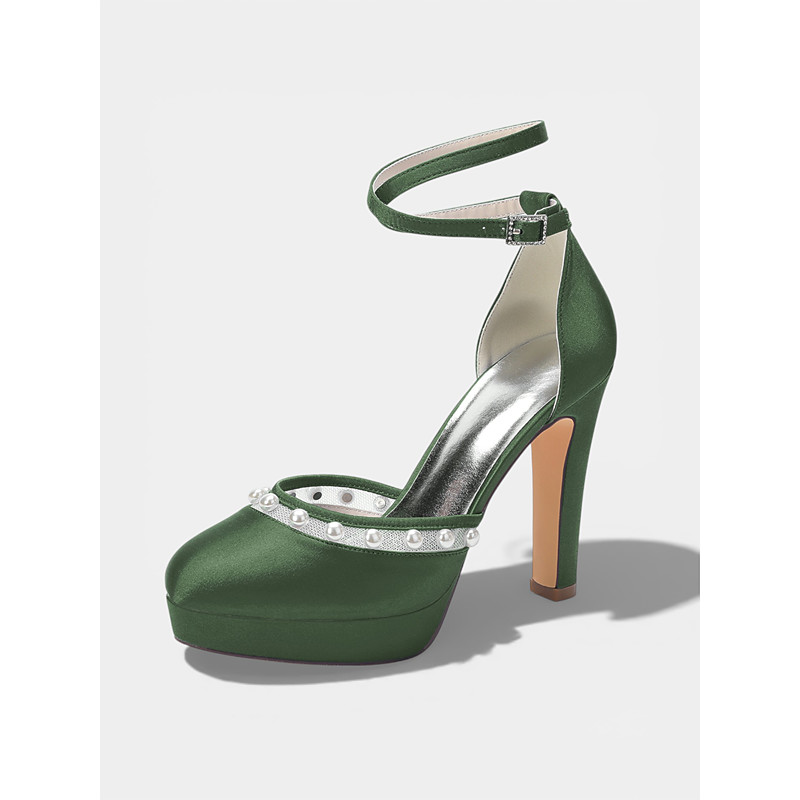 Women's Ivory Pearl Platform High Heel Pumps, Elegant Ankle-Strap Bridal Shoes for Church Wedding Bride