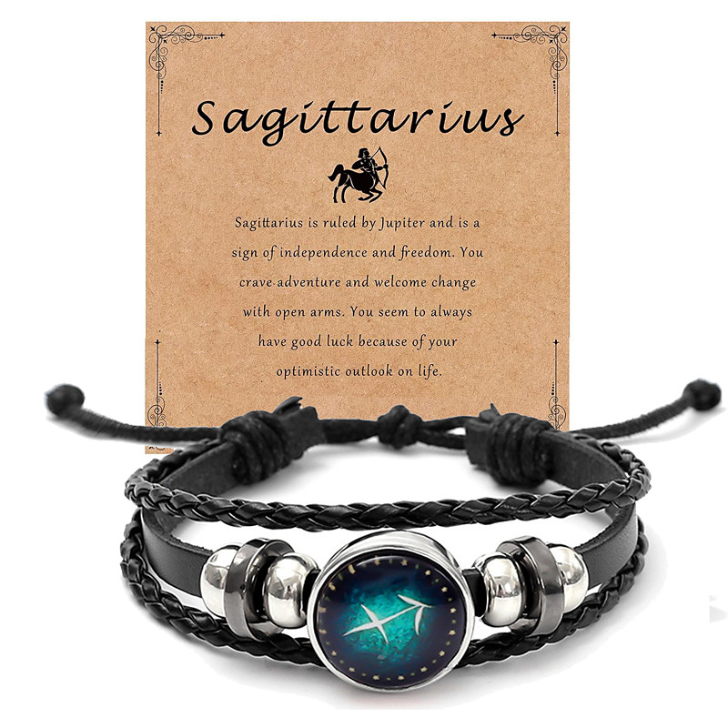 Multilayer Constellation Zodiac Leather Bracelet Handmade Woven Zodiac Sign Wrap Bracelet Wristband for Women Men Jewelry Birthday Valentine's Day Gift for Him