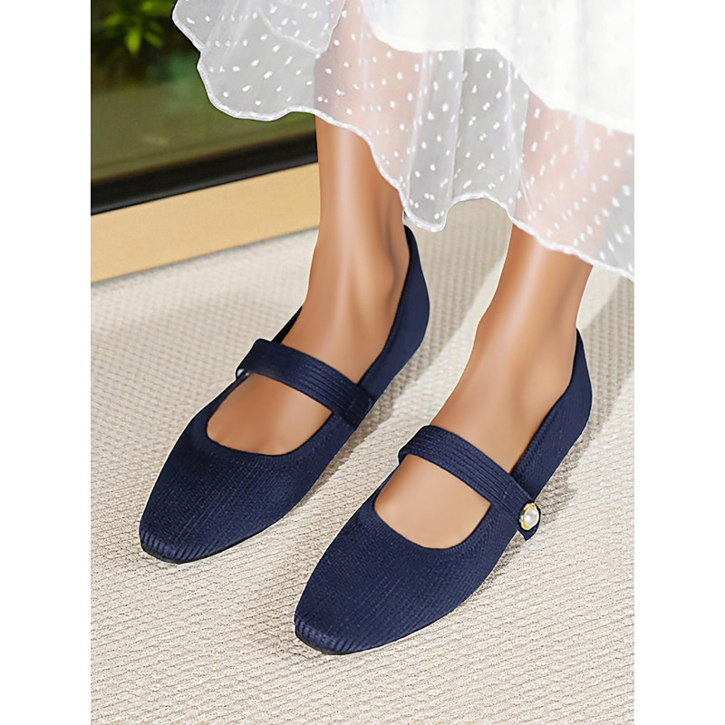 Women's Two-Tone Knit Ballet Flats with Strap – Breathable Casual Mary Jane Shoes for Daily Wear, Walking and Spring Outings
