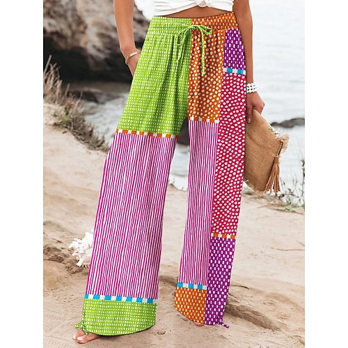 Per donna Culotte Gamba Larga Gamba larga Chinos Vacanza Vintage Stile Etnico Lunghezza intera Vita Alta Grafico Sfumatura A righe Asciugatura Rapida Traspirabilità Morbido Inelastico Formale