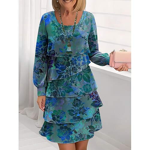 Per donna Abito al ginocchio Abito a trapezio Abito a strati Casual Vestibilità regolare Floreale Grafico Manica Lunga Girocollo Giallo Rosso Blu Viola Primavera Autunno Inverno