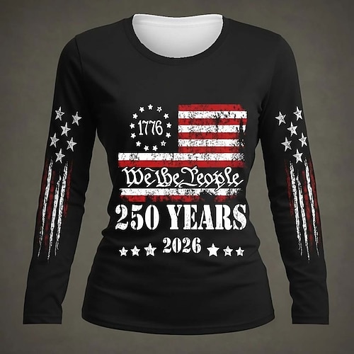 Maglietta patriottica per il Giorno dell'Indipendenza Americana 250° Anniversario Maglietta da donna Grafica Lettera Bandiera Stile classico casual Maniche lunghe Collo giro Collo rotondo Stampa