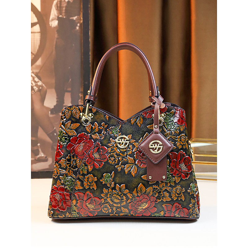 Women's Vintage Faux Leather Handbag with Embossed Floral Design – Elegant Retro Shoulder Tote Purse for Ladies, Weddings, Parties Formal Occasions