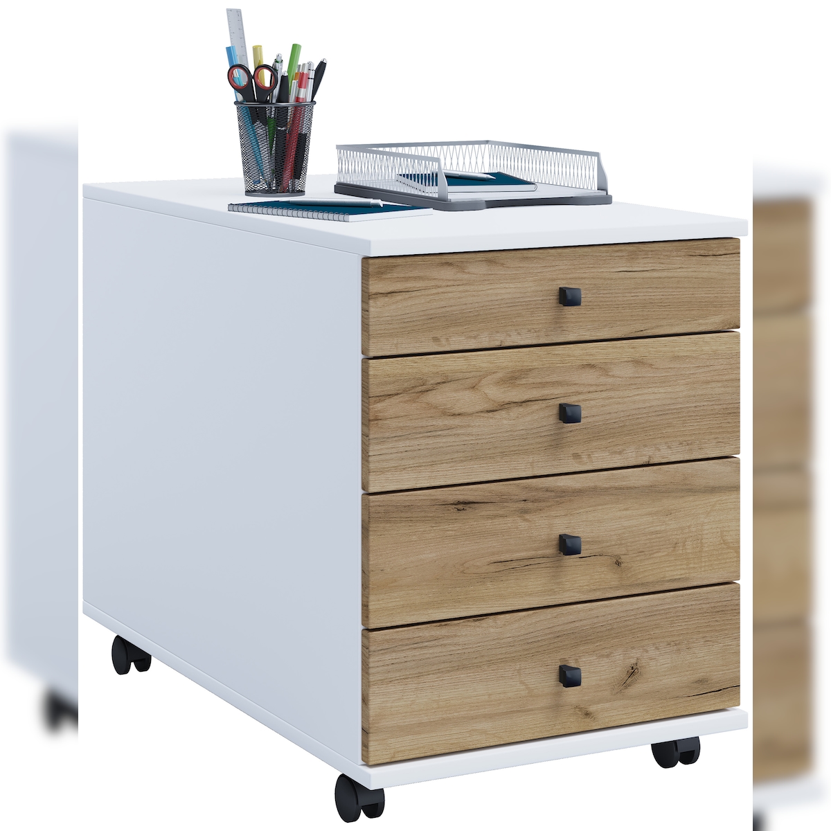 VCM Rollcontainer Lona Weiß / Honig-Eiche H. 57 x B. 42 x T. 75 cm