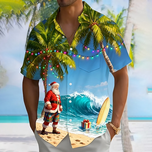 Natale Per uomo Babbo Natale Luci natalizie Camicia Camicia con Bottoni Manica Corta Divertente Ferie Estate Primavera Collo ripiegato Stampa 3D camicie con colletto Una tasca anteriore Blu