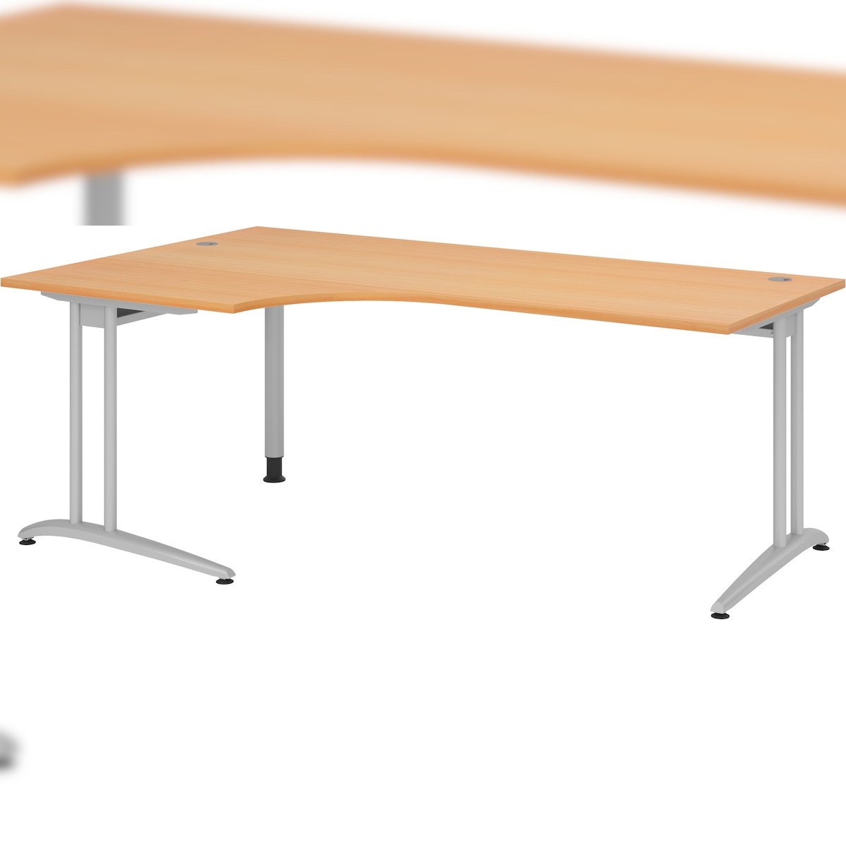 bümö Eckschreibtisch groß, B-Serie 200x120 cm, Tischplatte aus Holz in Buche, Gestell aus Metall - Schreibtisch L Form, großer Tisch für's Büro,