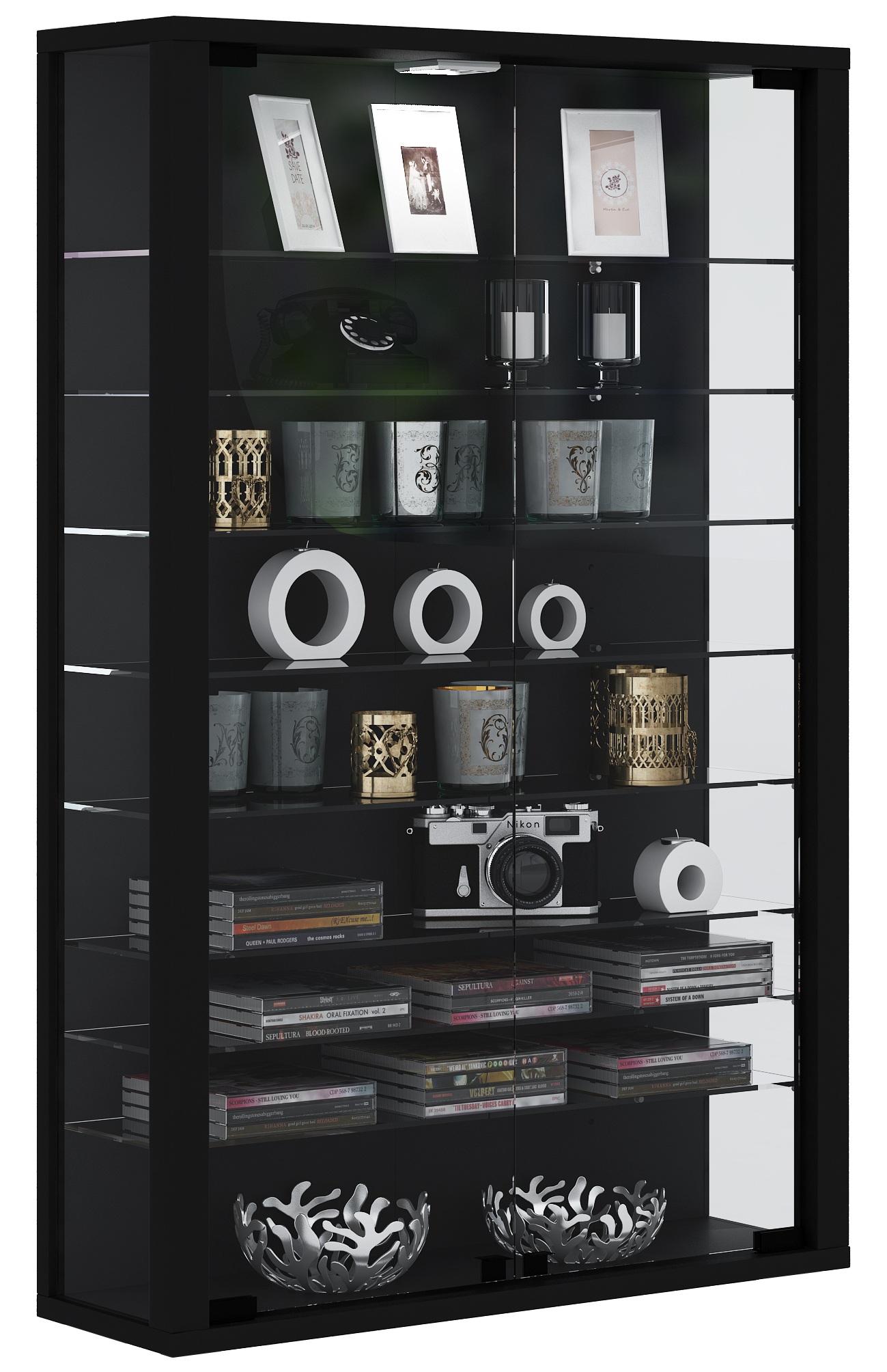 Vitrosa Mini vitrineskab, væghængt med 2 glaslåger og lys, valnød dekor