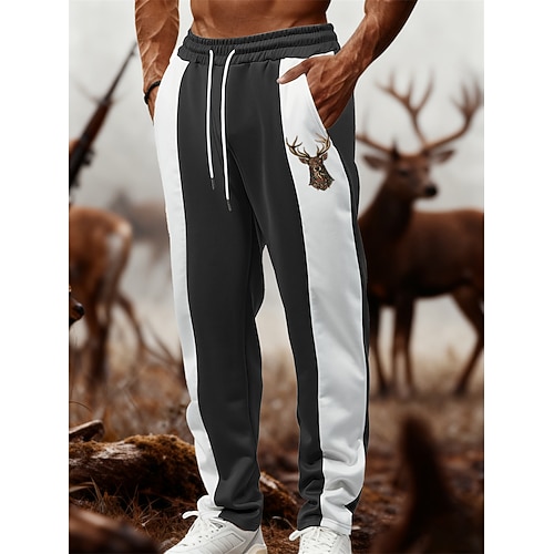 Herren Jogginghose Hose Kordelzug Tasche Elastischer Bund Farbblock Hirsch Komfort Sport im Freien Täglich Mode Lässig Schwarz Dunkelgray Mikroelastisch
