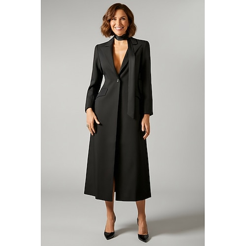 Per donna Abito da smoking Linea ad A Affari Formale Ospite di nozze Tessuto Elasticizzato Elegante Manica Lunga Lunghezza Midi Dentellato Risvolto a punta Monopetto Un Bottone