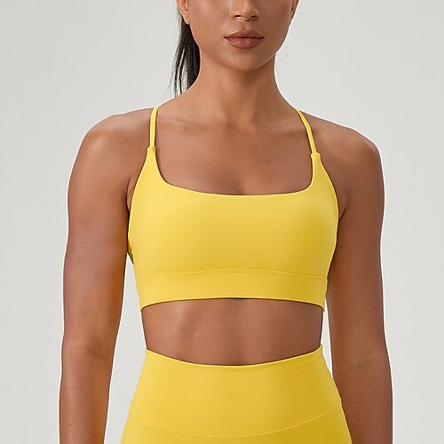 Per donna Sostegno leggero Reggiseno da corsa Reggiseno sportivo Schiena aperta Imbottitura rimovibile Top reggiseno Imbottito Sport ricreativo Jogging Corsa Leggero Morbido Traspirante Nero Giallo