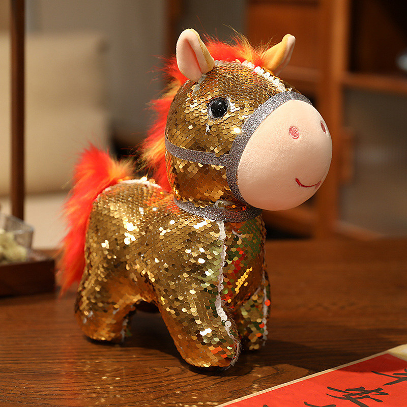 2026 Year of The Horse Shiny Sequins Mascot Ornament, Bling Chinese Horse Pendant Statues Decorations, Lucky Feng Shui Pony Figurine for Car, Bag, Keyring, Home Decor