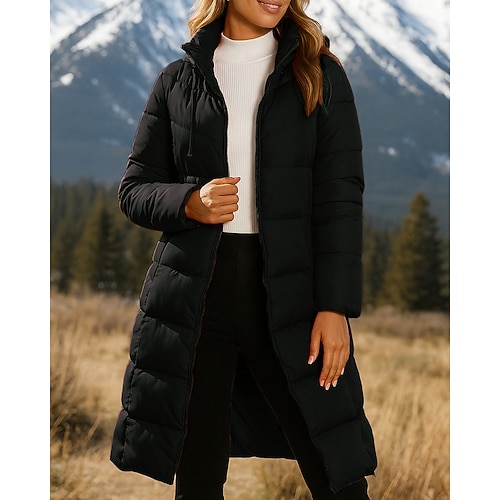 Per donna Giacca da escursionismo Giacca termica Piumino di media lunghezza Inverno All'aperto Calore Termico Top Nero Rosso Cachi