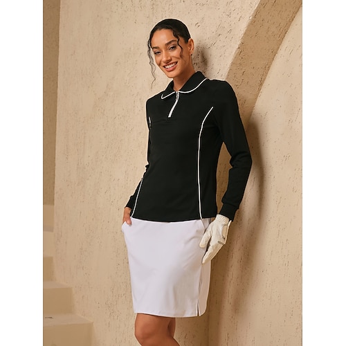Per donna Polo da golf Nero Manica Lunga Top Abbigliamento da golf da donna Abbigliamento Abiti Abbigliamento