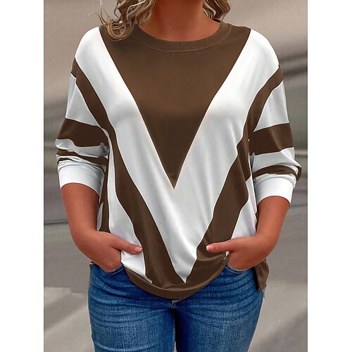 Per donna Taglia grossa Top Felpa Pullover Blocco di colori Stampato Manica Lunga Girocollo Casual Quotidiano Poliestere Autunno Inverno Nero Marrone