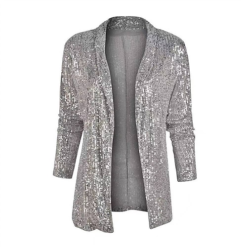 Per donna Camicia Blusa Top con paillettes Semplice Elegante Manica Lunga Colletto a Camicia Top Regolari Quotidiano Uscire Paillettes Argento Nero Rosso Viola Oro Autunno Inverno