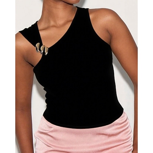 Per donna Blusa Semplice Elegante Sexy Senza Maniche Asimmetrico Top Regolari Quotidiano Ferie Uscire Patchwork Nero Bianco Marrone Estate Primavera Autunno