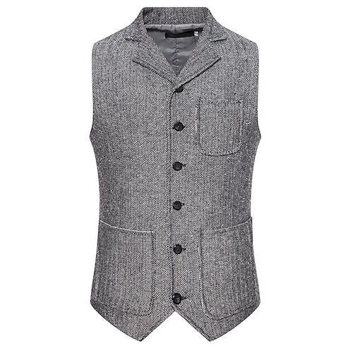 Per uomo Gilet Vacanza Feste Affari Moda Casual Primavera Autunno Tasca Bottoni Poliestere Confortevole Semplice Monopetto Un Bottone Bavero Vestibilità regolare Nero Cachi Grigio scuro Gilet