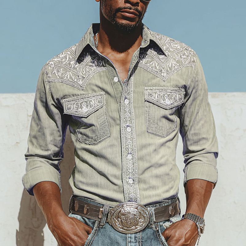 Men's Paisley Floral Print Ethnic Shirt Western Shirt Cowboy Shirt Long Sleeve Vintage Retro Outdoor Casual WorkWear Spring Fall Turndown Front Two Pockets Linen Like Shirt Button Up Shirts Army