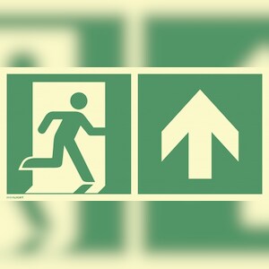 Notausgang rechts Pfeil oben, Kombi,ISO 7010,Kunststoff,nachl.,160-mcd,400x200mm