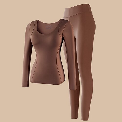 Damen Kompressions-Workout-Baselayer Kaltes Wetter Oben Unten Basisschicht oben und unten Kombination Winter Schwarz Khaki sportlich Laufen Fitness Hohe Taille Fleece-Futter Ultraweich Langarm Sport