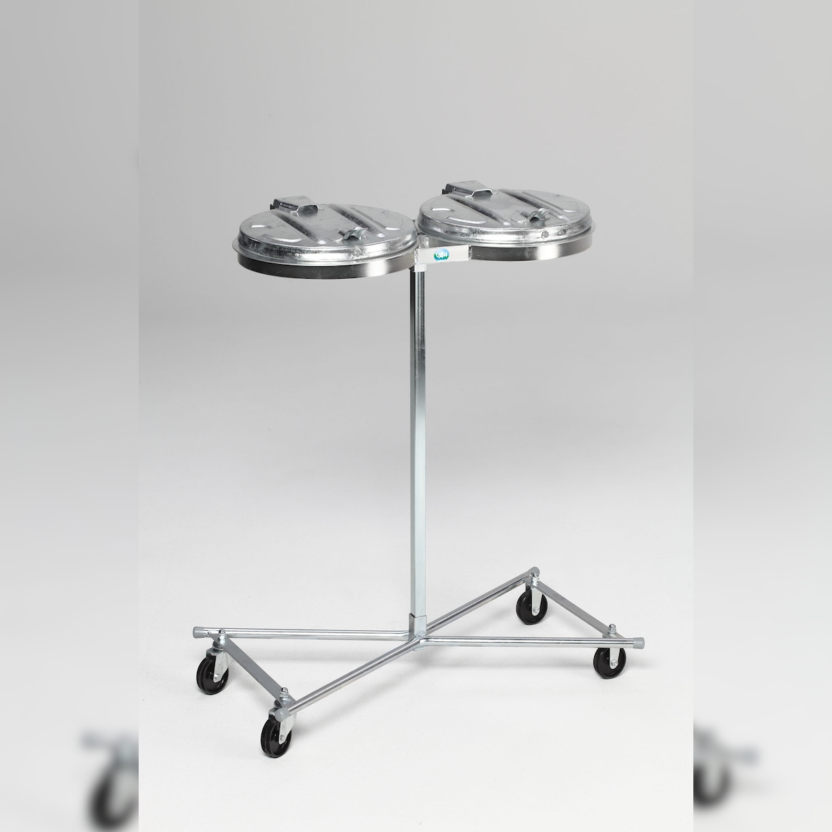 PROREGAL Robuster Doppel-Abfallsammler mit Metall-Deckel | Fahrbar | 2x 120 Liter, HxBxT 102x86x48cm | Stahl | Verzinkt-Verzinkt | Mülleimer