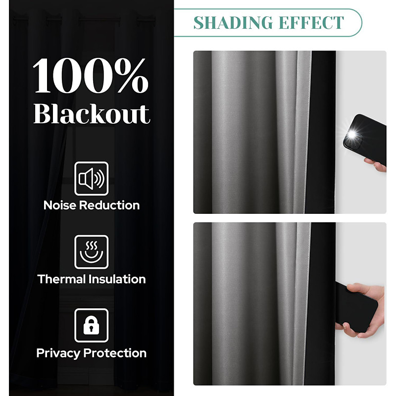 Blackout Curtain Drapes Farmhouse Curtain 2 Panels Black For Living Room Bedroom Door Kitchen Balcony Window Treatments Thermal Insulated