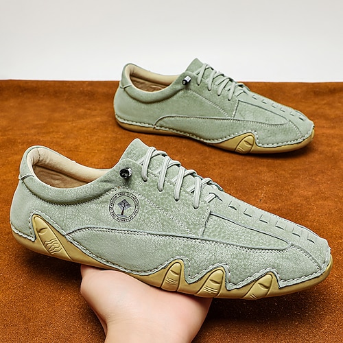 scarpe da ginnastica casual da uomo in similpelle con lacci verdi e suola cucita a mano – scarpe da passeggio leggere e comode per l'uso quotidiano