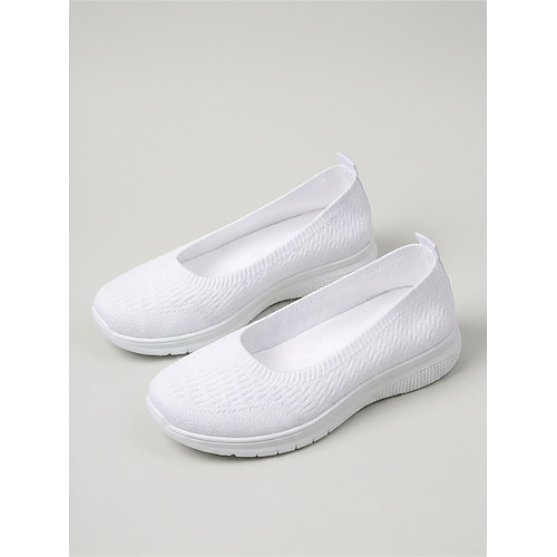 Scarpe da passeggio da donna bianche, leggere e facili da indossare: sneakers comode e traspiranti in maglia, ideali per viaggiare, per l'uso quotidiano e per il tempo libero.