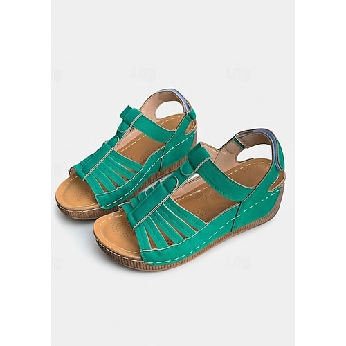 sandali da donna verdi con cinturino e chiusura a strappo – scarpe da passeggio leggere per abbigliamento casual