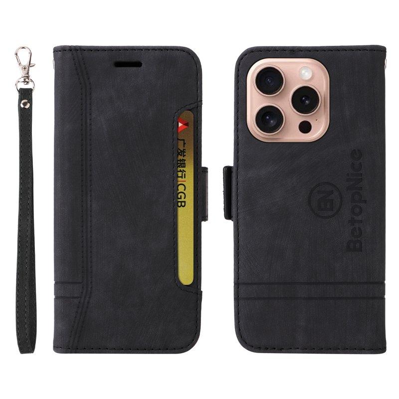 BETOPNICE 001 iPhone 16 Pro Plånboksfodral Konstläder - Svart