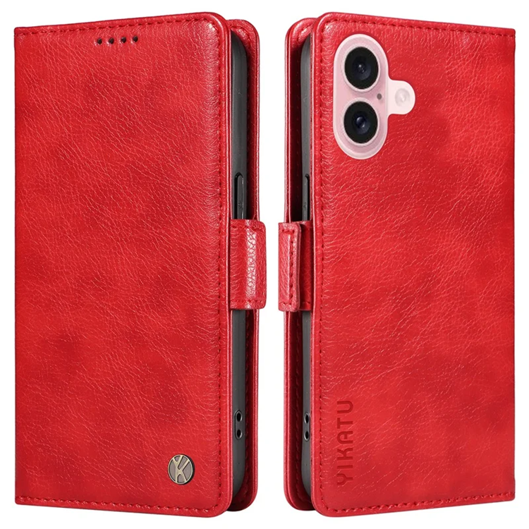 YIKATU iPhone 16 Konstläder Plånboksfodral Litchi Texture - Rosa