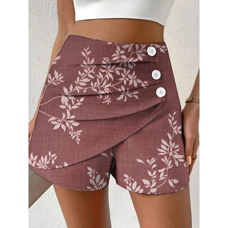Women's Chinos Shorts Vacation Vintage Ethnic Style Short High Waist Floral Graphic Pleated Micro-elastic Vacation Street Daily Violet Robin's Egg Blue Red Green Summer Spring Regular Fit