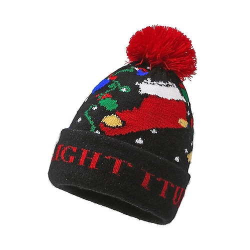 Weihnachtsstrickmütze für Damen – rot mit Rentiermotiv und Bommel, aus Polyester, perfekt für die Feiertage und die Winterzeit
