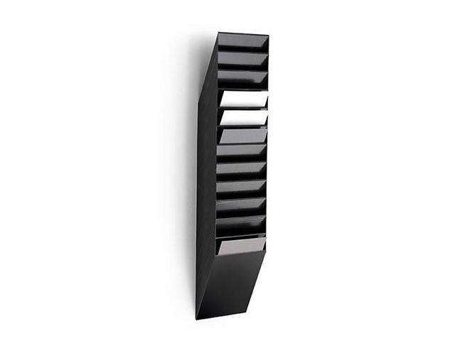 ATLANTA Flexiboxx tidningsställ, väggmontering, genomskinlig display, 12 fack, A4, svart