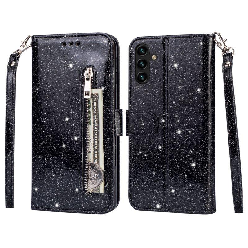 Samsung Galaxy A35 5G Skal Glitter Ställ Läder Drop-skydd - Svart