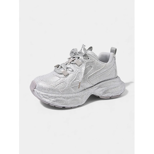 Sneakers da donna con plateau e glitter rossi - scarpe da ballo con suola spessa e scintillante per discoteche, spettacoli teatrali e feste notturne