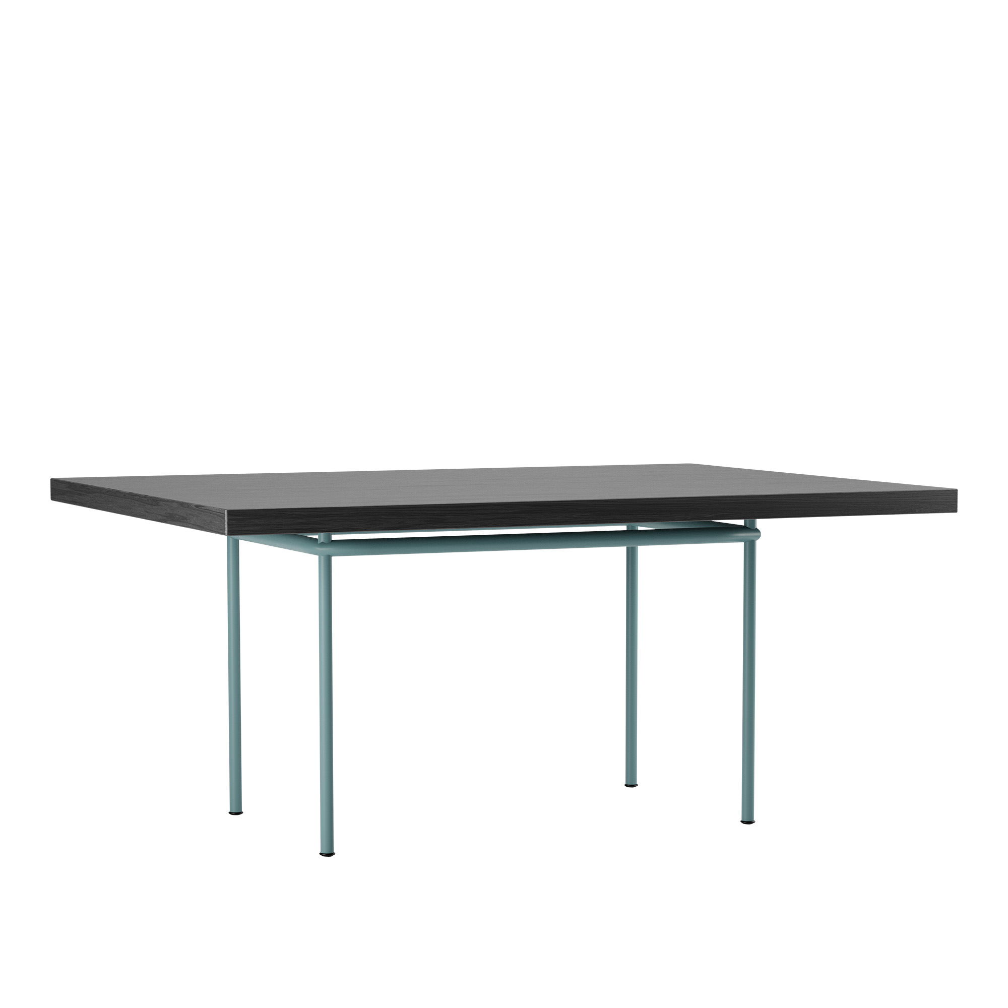 Cassina - LC12 La Roche bord, Light Blue Enamel Steel Base - Matbord - Le Corbusier,Pierre Jeanneret - Svart,Blå - Metall/Trä