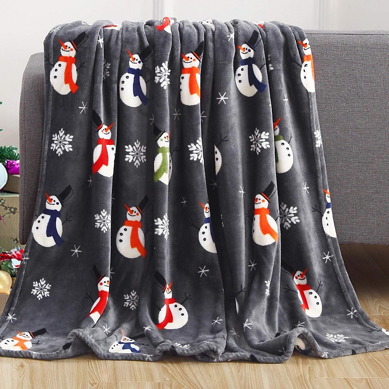 Festive Burgundy Reindeer Christmas Blanket, Soft Flannel Throw for Sofa, Holiday Home Decoration and Gift