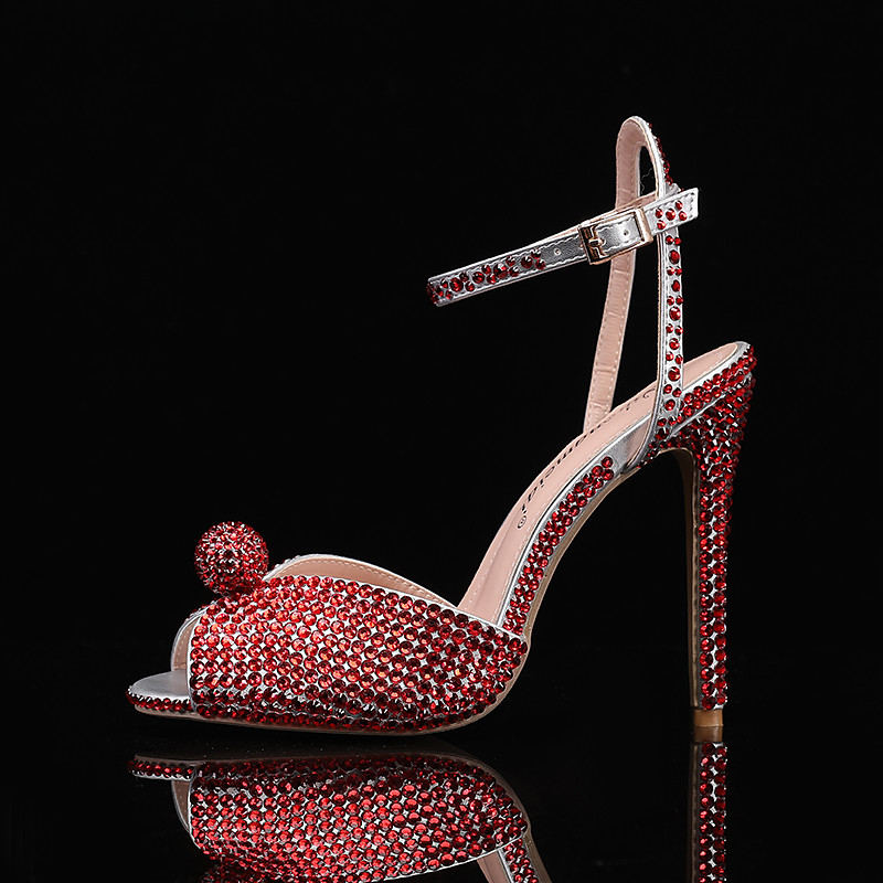 Women's Rhinestone Embellished Stiletto Heel Sandals with Ankle Strap - Sparkling Party Wedding Shoes