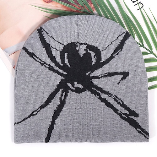 Herren Unisex Beanie Mütze Wintermützen Beanies Schädelkappe Strickmütze Schwarz Weiß Acrylfasern Jacquard Gestrickt Gemütlich Halloween Alltagskleidung Festival Spinne Warm