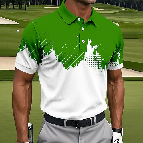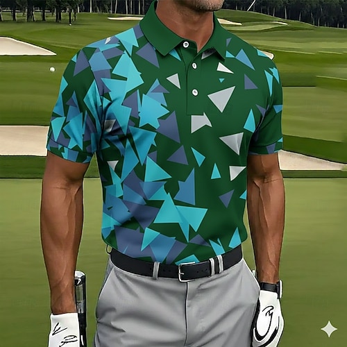 Per uomo Geometrico Golf Polo Sportivi Manica Corta Magliette polo Camicie con Colletto Casual Athleisure Bottoni Estate Primavera Blu Bianco Verde