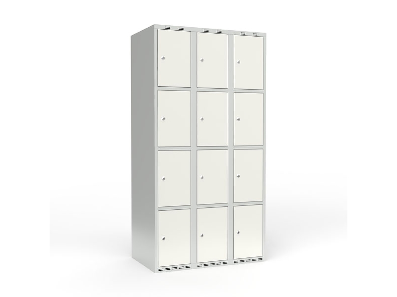 Koulukaappi 3x300 Suora katto 4 lokeroa korkeudella Vaaleansininen teräsovi Lukituskahva Varastokahva