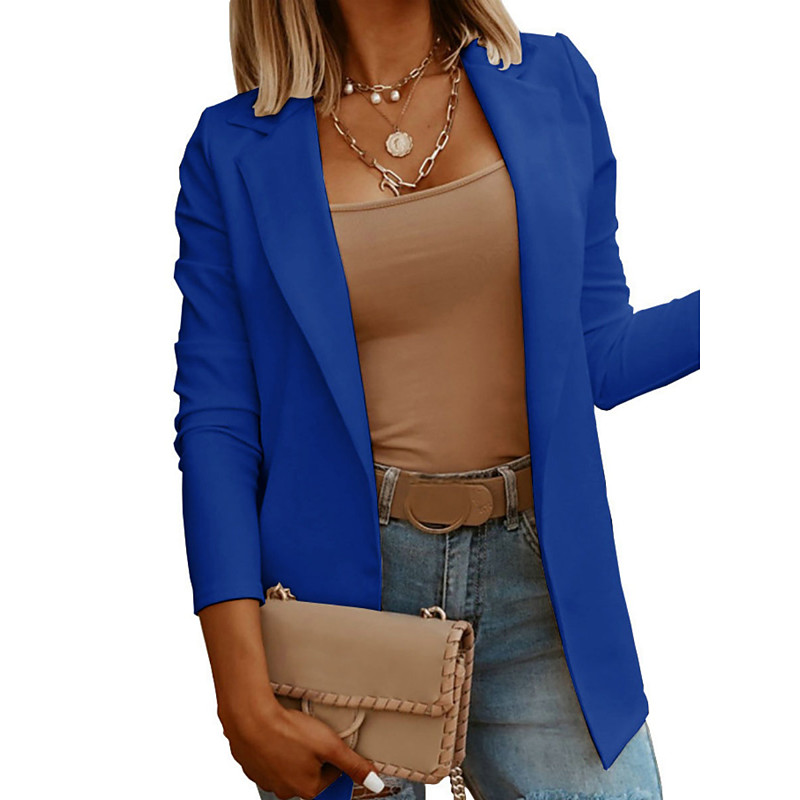 Women's Casual Jacket Comfortable Breathable Slim Fit Casual Plain Vacation Work Street Casual Open Front Regular Turndown Regular Fit Long Sleeve Outerwear Black White Blue Summer Spring