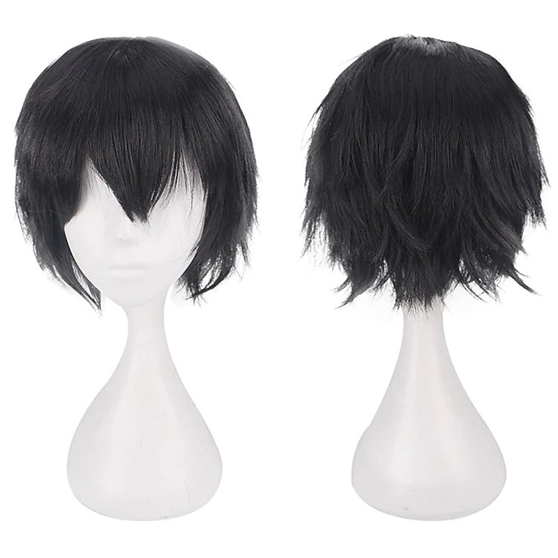 White And Black Wigs For Men Short Wig Black White Split Body Synthetic Wig Belt Bangs Boy Costume Anime Role-Playing Wig Micro Roll Natural Hair