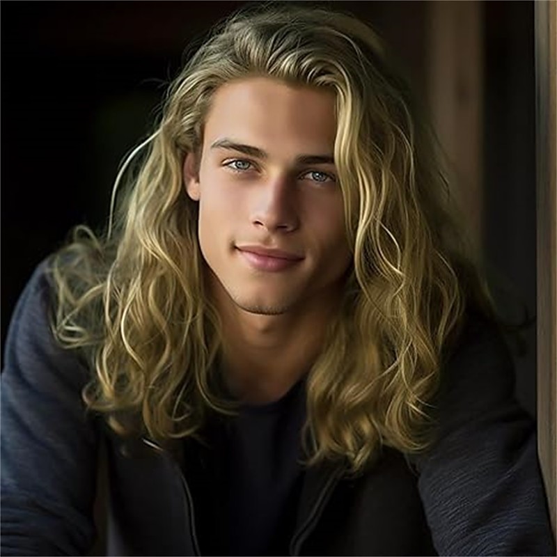 Long Wavy Brown Wigs for Men Synthetic Heat Resistant Cosplay Halloween Costume WigLight Brown