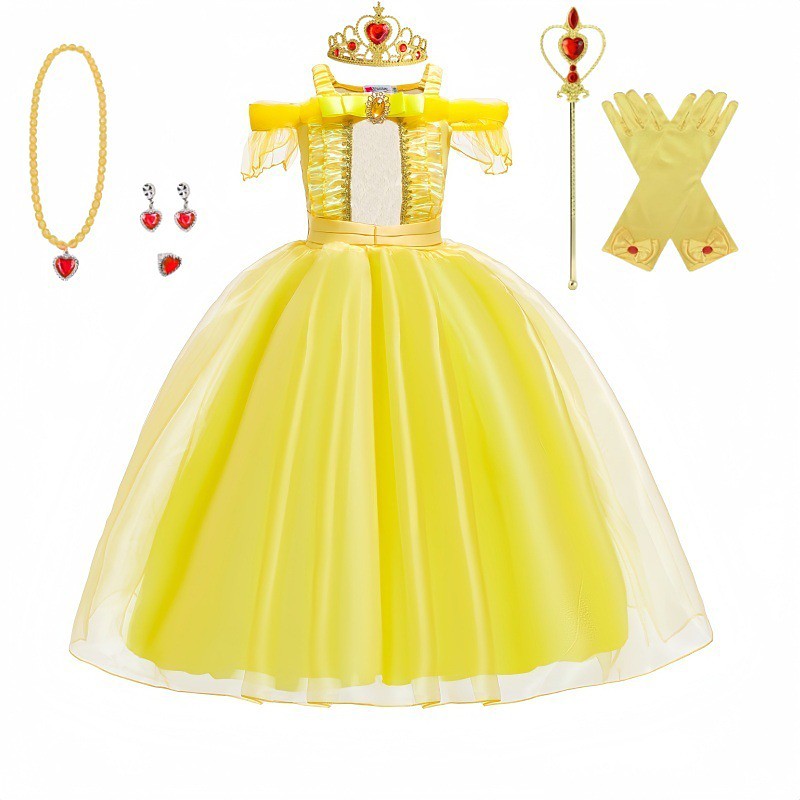 Sleeping Beauty Beauty and the Beast Fairytale Princess Belle Flower Girl Dress Theme Party Costume Tulle Dresses Girls' Movie Cosplay Halloween Yellow With Accessories Dress World Book Day Costumes